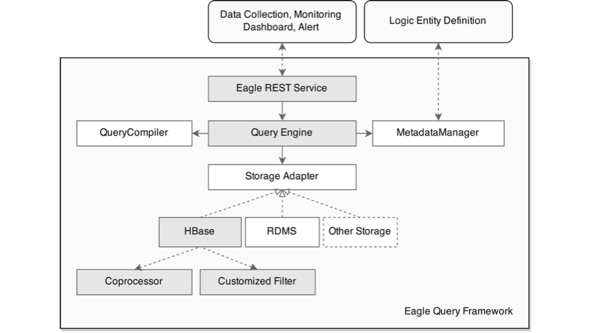 Eagle 在 NoSQL Model 上提供类似 SQL 的 REST 查询语言(List / Aggregation / Bucket / Rowkey / Rowkey Query、Pagination、Sorting、Union、Join)